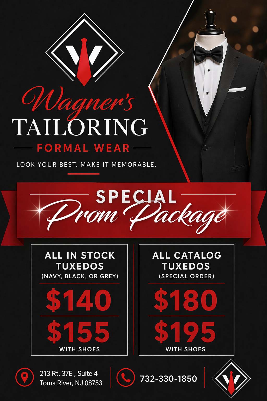 With a focus on quality, convenience, and personalized service, Wagner's Tailoring Formal Wear is your trusted destination for both formal attire and expert alterations.